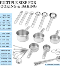 18-Piece Stainless Steel Measuring Cups and Spoons Set,5 Stainless Steel Nesting Measuring Cups & 6 Spoons,1 Leveler & 5Mini Measuring Spoons,1Tbsp Coffee Scoop with Clip for Cooking & Baking