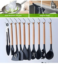 Our kitchen cooking utensils set is made of food grade silicone heads and hardwood handles, cooking with non-stick silicone utensils set can protect your cookware from any scratches and won't melt when you use it, with a high temperature resistance range of 40°C -230°C (104°F-446°F), safe to use on hot food, cooker top, dishwasher and so on. Eco-friendly and odourless, more flexible for long term use.