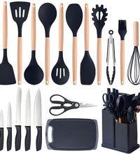 Kitchen Utensils Set- 19 Pcs Silicone Cooking Utensils Set for Nonstick Cookware-Silicone Spatulas Set, Kitchen Gadgets Tools, Pots and Pans Accessories-(Black 19 PCS Set)